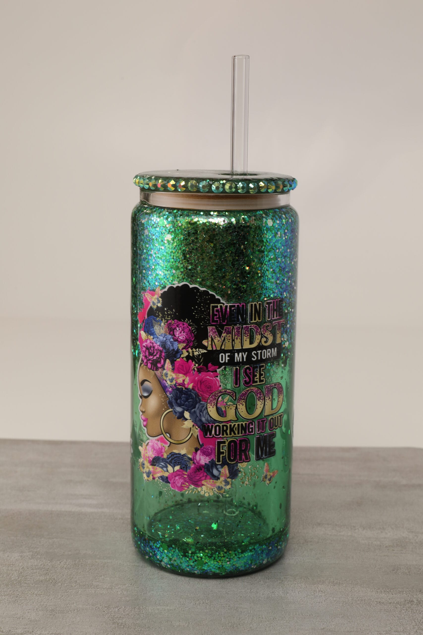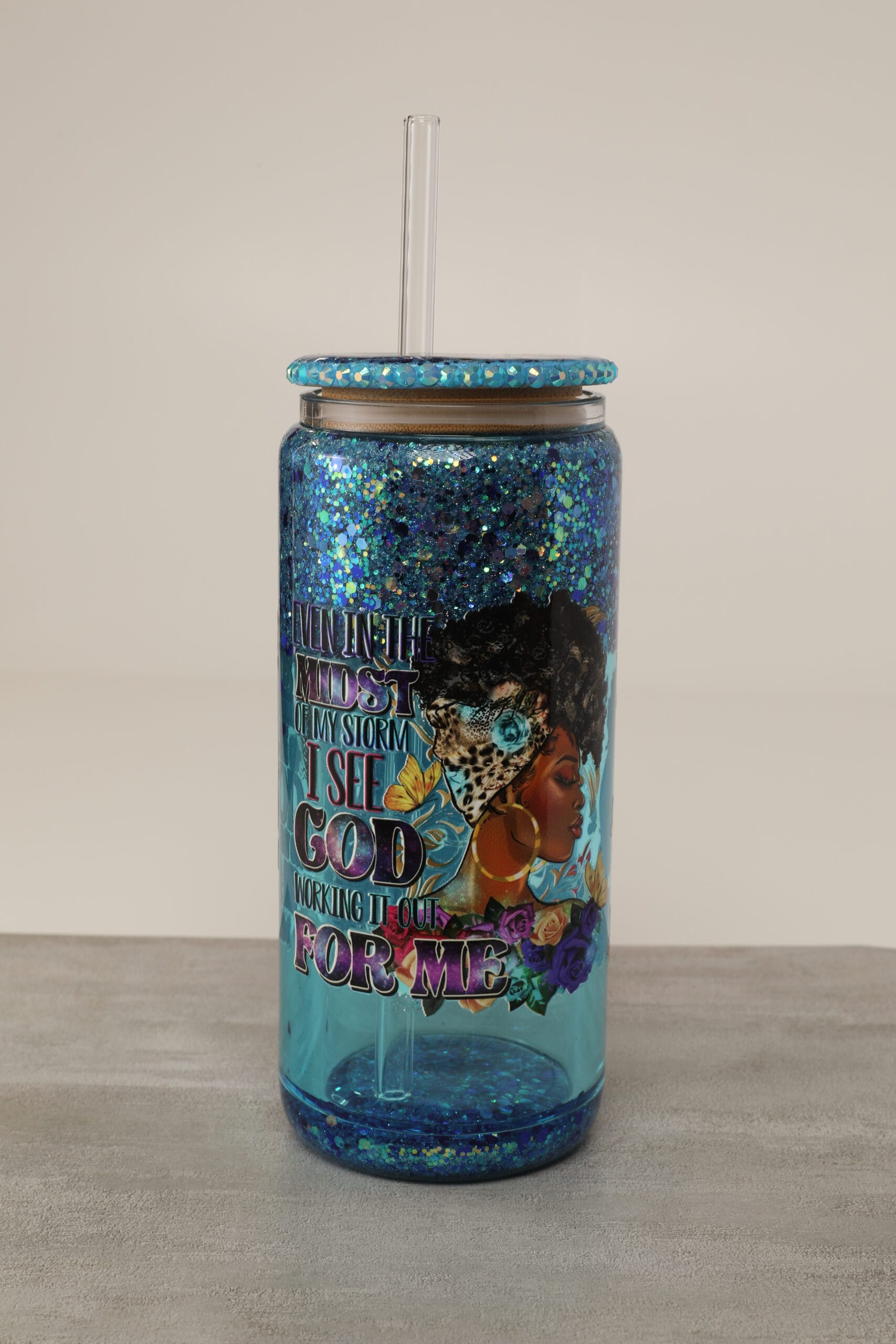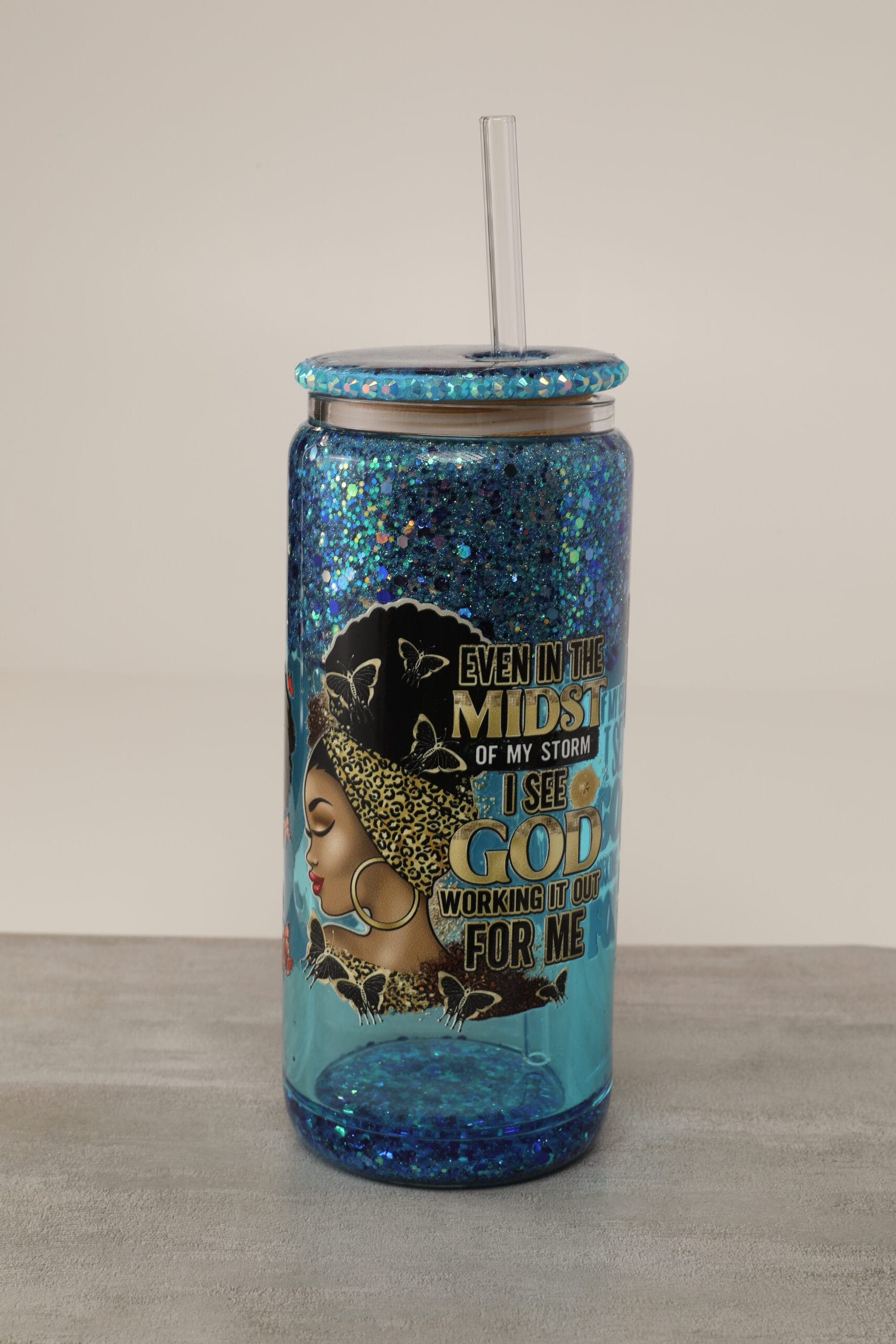 Bring peace, purpose, and sparkle to your day with our ”Even in the Midst of a Storm” Snow Globe Cup. This floating glitter glass tumbler is more than just a beautiful piece of drinkware – it’s a powerful reminder that even when life feels uncertain, God is faithfully working behind the scenes for your good. Whether you’re starting your morning with coffee, sipping an iced drink, or winding down with tea, this cup offers encouragement in every sip.
